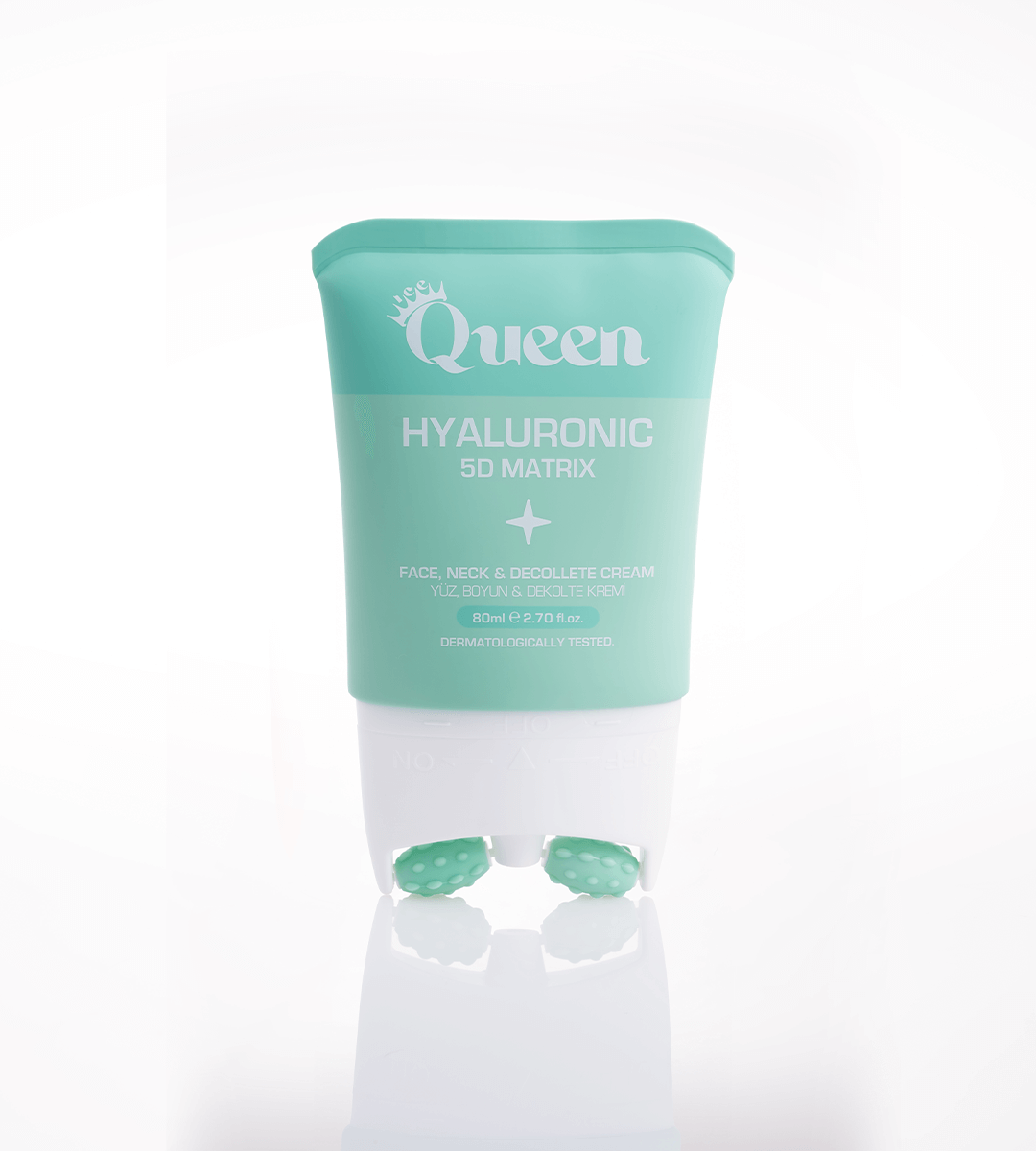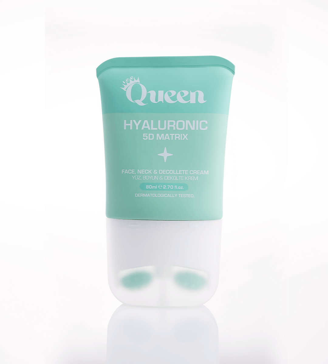 Queen Beauty 5D Matrix Hyalüronik Asit Jel Krem, beş farklı molekül ağırlığına sahip Hyaluronik Asit aktifleri içerir. Farklı molekül ağırlıklarına sahip hyaluronik asitlerin mükemmel dengesi sayesinde cildin ihtiyacı olan nemi hapseder ve anında lifting etkisi sağlar. Kırışıklık görünümünün azalmasına yardımcı olur.
